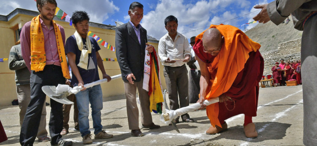 V průběhu prázdninového dobrovolnictví jsme položili s tamními obyvateli základní kámen budovy nové školní laboratoře. K položení základního kamene byl pozván tamní mnich, který se zasadil o rozvoj největšího kláštera ve vesnici Mulbekh. Ten přišel se svým doprovodem, odříkali modlitby a krumpáčem a lopatou osadili první kámen nových laboratoří. Všichni přítomní Himálajští patroni dostali jeho požehnání a poděkování je jejich podporu naší školy.