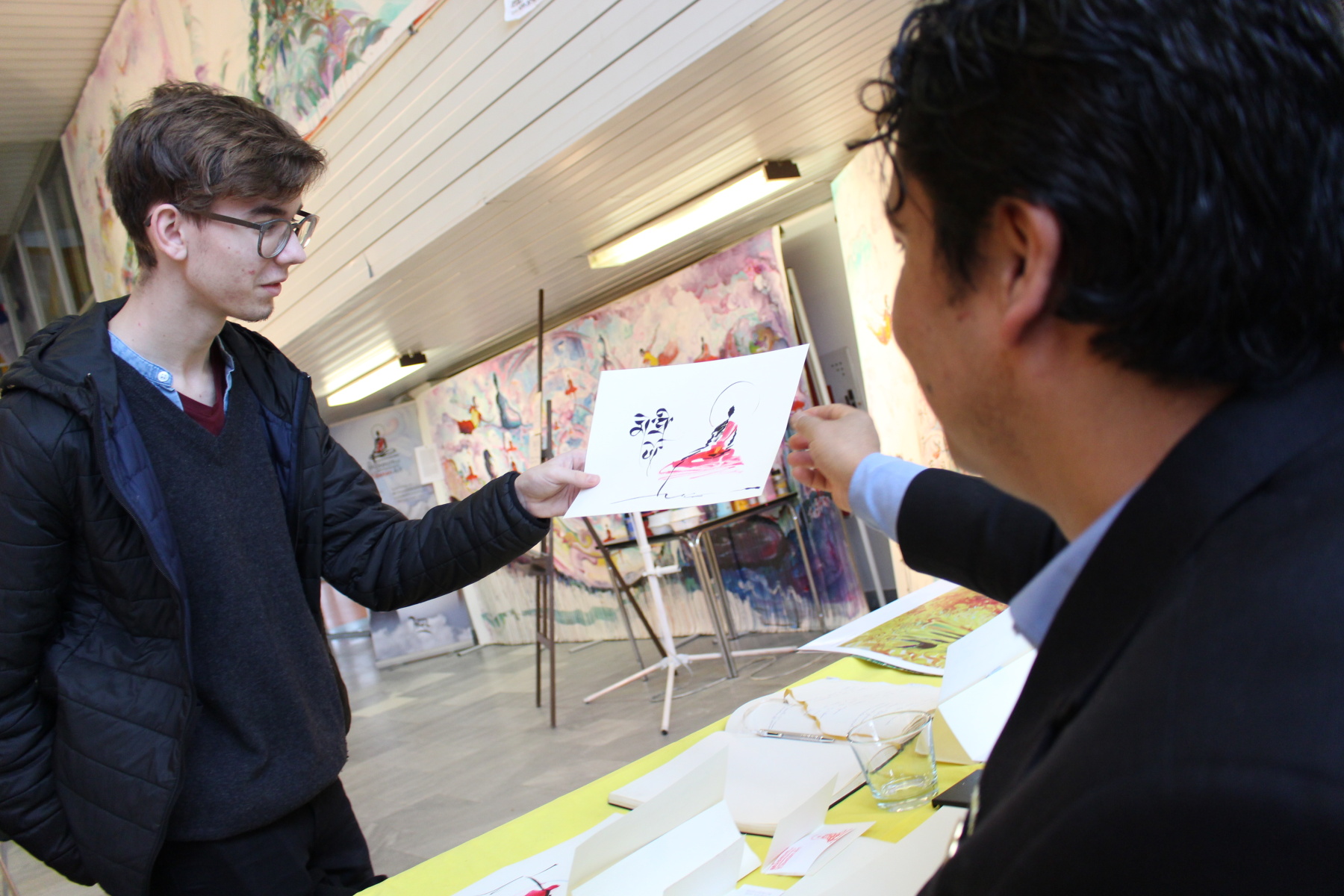 Tashi měl také přednášku o jeho životě v exilu. Popisoval, jak jeho otec utekl z Tibetu, jak žili Bhútánu a následně museli utéct do indické Dharamsaly a co jej motivovalo stát se umělcem.