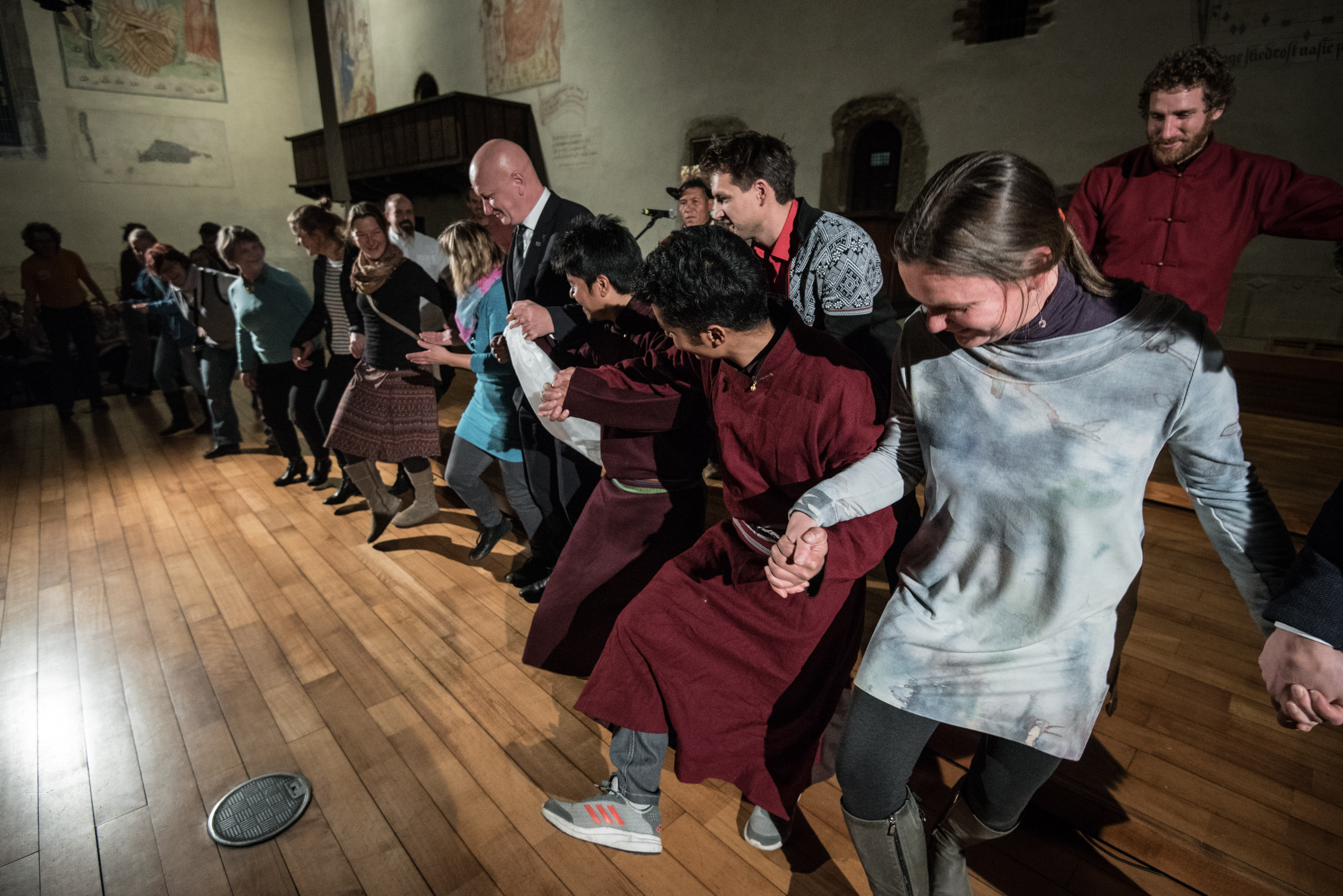Když se něco podaří, tak se v Malém Tibetu slaví. Slaví se tancem a tancovat musejí naprosto všichni. Proto jsme si na konci pražského koncertu nechali od pana Ančuka zahrát nomádskou píseň, překladatelé Sonama a Khenriab nám ukázali, jak na ni tancovat, a všichni účastníci koncertu si šli na podium ten exotický tanec zkusit. Doufám, že i ti, kteří tam nebyli, cítí, že to nemělo chybu, viz video zde.