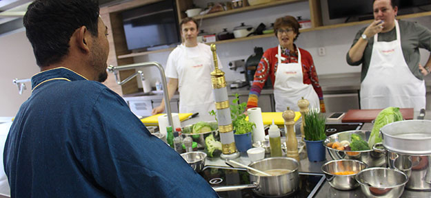 Dva kurzy vaření v brněnském studiu Kuliner a pražském Ola Kala se povedly skvěle. Zúčastnilo se jich 4 a 12 účastníků. Ochutnali tibetský slaný máslový čaj a těsto kholak, rozehřáli se na zeleninové polévce thukpě a potom trénovali, jak udělat pěkné momo: jak připravit jejich náplň (dělali jsme zeleninovou a masovou), jak má vypadat těsto, jak připravit omáčku, ale hlavně jak správně momo zabalit a různé varianty jeho tvarů. Potom jsme si zkoušeli momo taky osmažit.